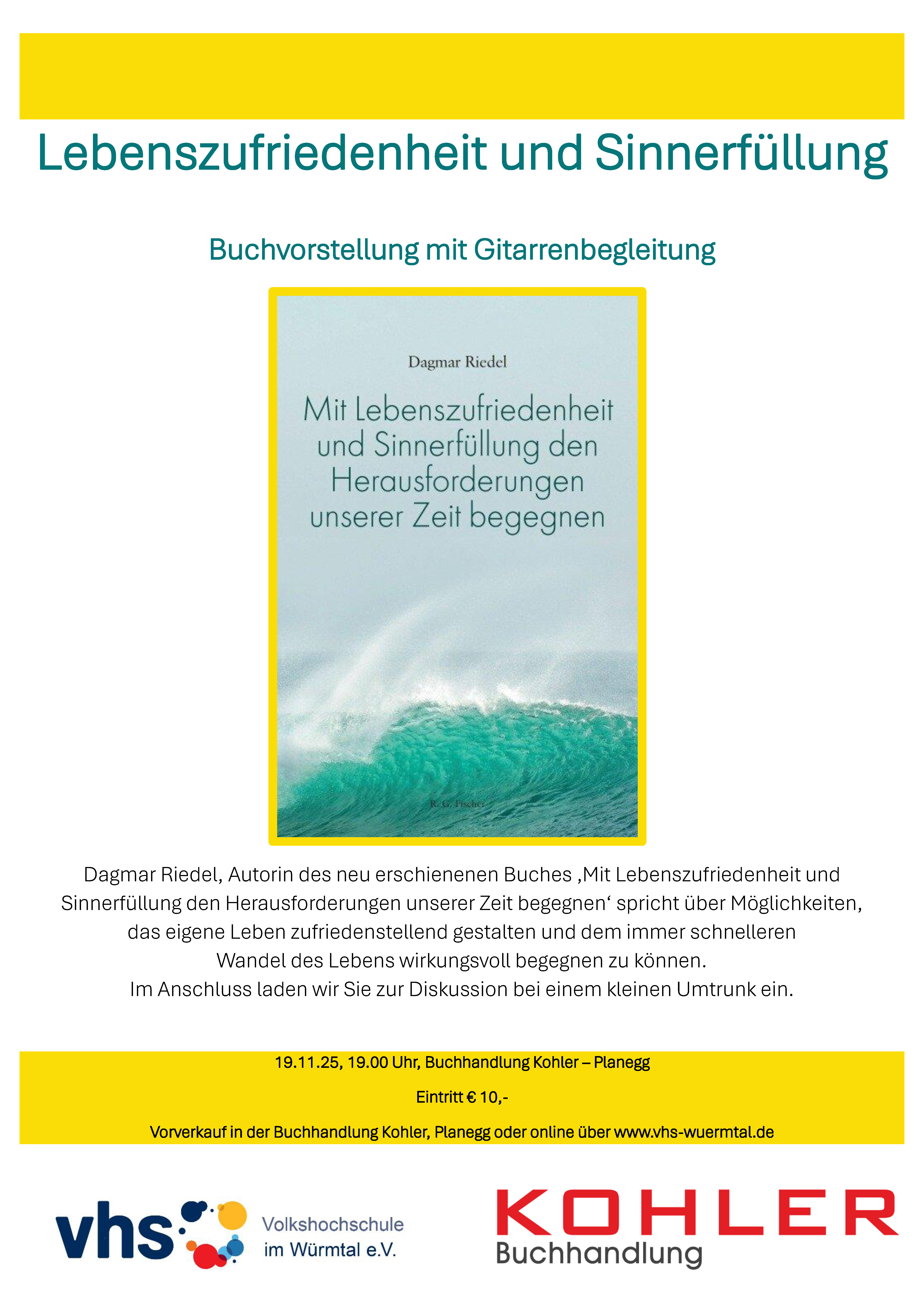 Vorverkauf in der Buchhandlung Kohler, Planegg oder online über www.vhs-wuermtal.de